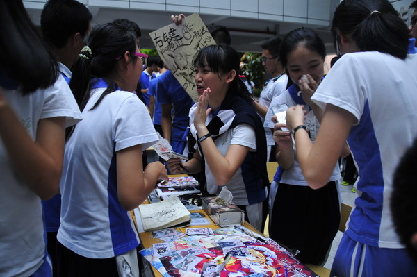 顷刻之间,各个社团都收获了两位数的新学年新社员,有些热门社团摊位前还排起了长队。除了受表彰的排球社、街舞社、电声乐团、纸艺社、国旗护卫社团、廿城杂志社、形体礼仪社团、校园电视台、志愿者服务社团、美术设计社团这“年度十大魅力社团”,投资理财社异军突起,人气爆棚,近百位学生踊跃报名。