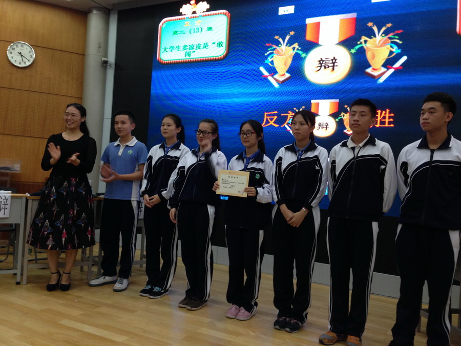 最终经过评委们的慎重思考和艰难抉择,高二(2)班获得本次辩论赛的冠军,高二(13)班获得亚军。高二(2)班高畅同学获得“最佳辩手”称号。李雅萍副校长为获奖选手颁发了奖项。