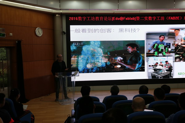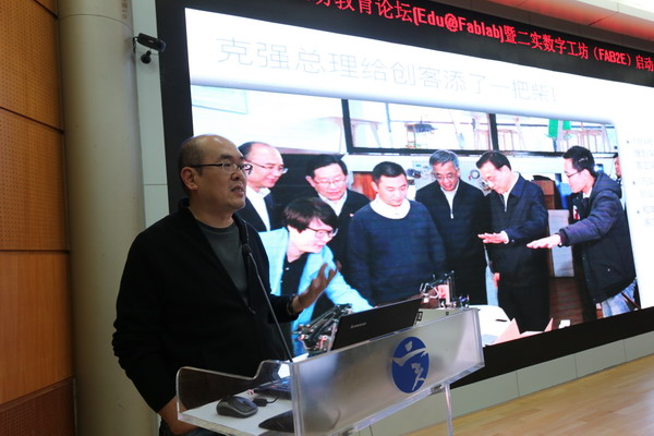 深圳市开放创新实验室李大维主任、中山大学Fablab负责人胡铁君教授、台北省Fablab负责人洪尭泰等专家在数字工作坊启动仪式上作专题发言,深圳市教育发展基金会陈观光理事长、深圳市教育科学研究院宾华副院长、广东教育学会科技教育委员会王增海副秘书长等领导以及深圳大学王华权教授、朱春莺教授、徐明高级工程师等专家出席启动仪式。上述专家、领导被聘为二实数字工作坊顾问。