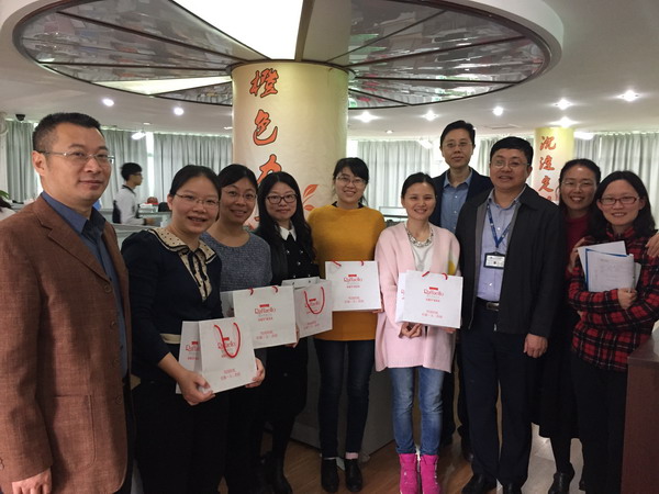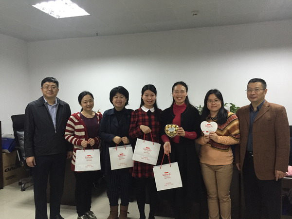 3月8日上午,我校赵立校长、李雅萍副校长、郑向东副校长、冯大学副校长4位校领导会同党委办公室、工会、妇委会等部门负责人,遍走初、高中两部慰问女教职工。在各办公室,赵立校长等逐一向女教职工们送上慰问小礼物——两盒巧克力,代表学校祝福大家节日快乐。欢声笑语,殷殷祝福,让校园增添了节日的温馨与快乐。