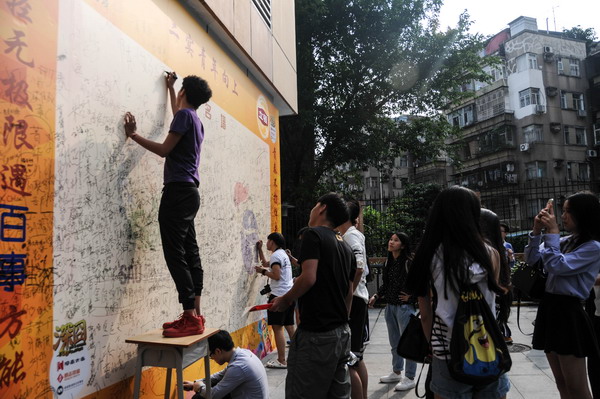在教学楼一侧的墙壁上,张贴着一副巨大的涂鸦墙,引来无数游客竞相签名留念。涂鸦墙上,一副对联引人注目:“青春不打烊先明志才能立壮志,年轻无极限遇百事方能成大事”,横批“二实青年向上”。这幅对联对仗工整而应景,而且很好地嵌入了游园会的赞助商的名称。百事可乐饮料有限公司、深南大道文化传播有限公司、中国银行水库支行三个赞助商均派出工作人员进入游园会开展公益互动游戏、金融防诈骗公益宣传,使本届游园会与社会的对接更为充分,校园活动中的社会元素更为明显。