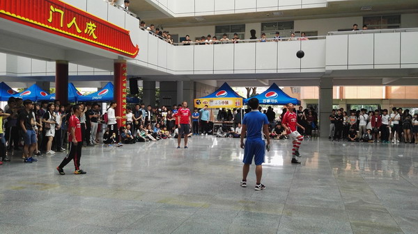 在这场市民大联欢中,社会力量显得比往年更为活跃。二实校友会携手碧波足球俱乐部联合开展爱心义卖和足球艺术展示,俱乐部的小朋友们在运动场上举行了一场激烈的足球赛,俱乐部西班牙籍的足球教练还在社团展演现场与二实校友共同展示了花式足球,绕球、跳球及身体各部位连续颠球的精湛技艺引起掌声雷动,现场观众的入场互动更将游园会的欢乐气氛带入新的高潮。