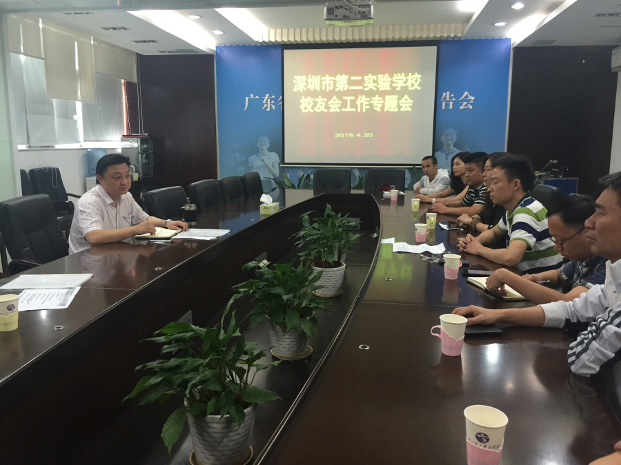 4月29日下午,在高中部11楼会议室召开了“深圳市第二实验学校校友会专题工作会”,这是鲁江校长到任后第一次与校友会常委们的见面会,叶坤镇会长及冼耀祺、刘赞波、陈燕辉、陈剑光、徐童、沈斐斐、李家健等校友参会。会议由党办主任、校友会秘书长陆林主持。