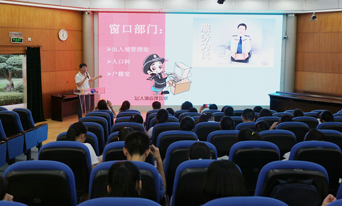 邹佛生校友2001年从警,先后在三个基层派出所和区、市公安局的刑警队、特勤队、治安部门、预审部门、监管等部门工作,经历了刑侦、治安、社区、特行、内勤和分局特勤、市局指挥调度等多个岗位。宣传海报上身着警服的邹师兄具有公安干警的威严,特别是那双穿透力极强的眼睛。而这场的讲座,邹佛生校友则是着便装登台,以普通市民的身份与同学们交流在日常生活动中应该如何与警察打交道。