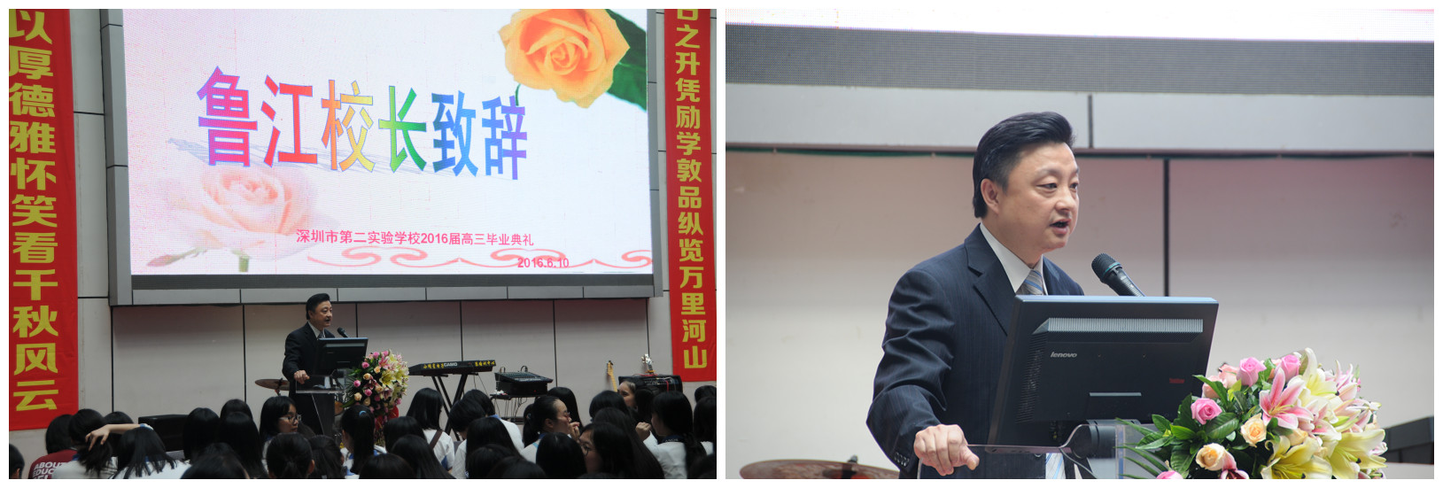 鲁江校长激情洋溢、慷慨激昂的毕业致辞不时引来阵阵掌声,鲁校长首先对每一位辛勤付出的教职员工、家长、每一位高三同学表达了诚挚的感谢。他引用大儒张载的名言:“为天地立心,为生民立命,为往圣继绝学,为万世开太平。”寄语学子们今后不管从事何种职业,都应秉承赤子之心,上不愧于天,下不祚于地,不但要做一个幸福的人!更要心怀国家民族,以天下为己任,做一个对社会有用的人!