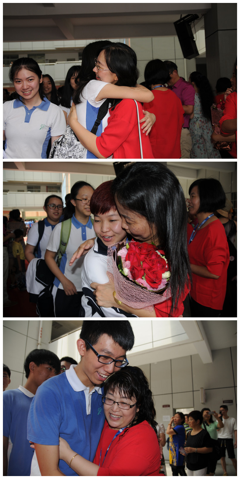 典礼最后,鲁江校长率领校领导、中层干部、高三年级的全体教师列队与走过红地毯与2016届高中毕业生们或击掌、或握手、或拥抱,一一相送告别;或微笑、或泪水、或感恩、或嘱托......情真意切、感人至深,将毕业典礼的气氛推向了顶点。