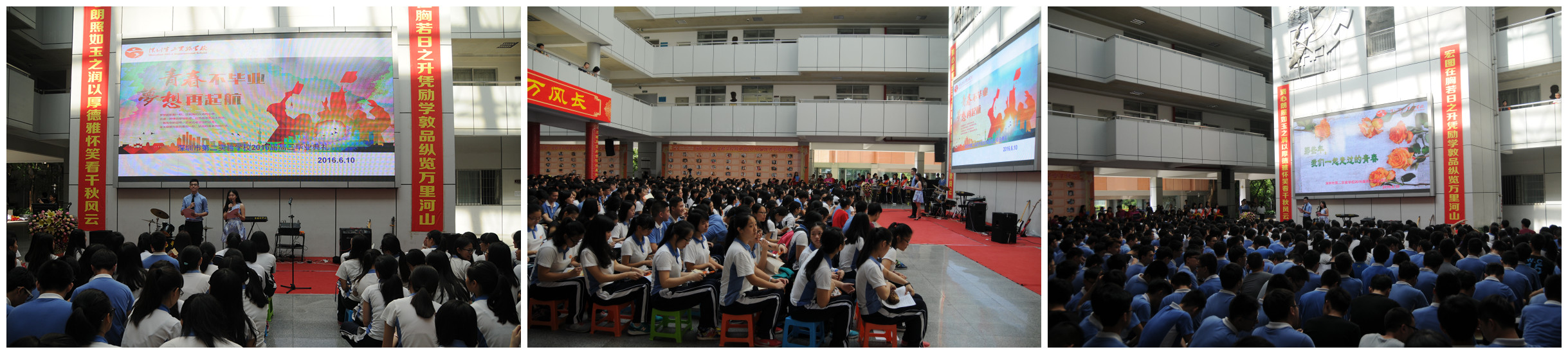 日映岚光,凤凰花开,此时别离,这是2016届高三年级的最后一次大聚会。三载同窗,数年情义从今山长水阔。2016届高三的莘莘学子,只要你们坚守梦想与激情,青春不会毕业,梦想会在新的起点起航!带着母校的祝福,你们此去必定俊采星驰,长风万里!