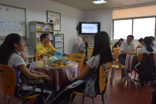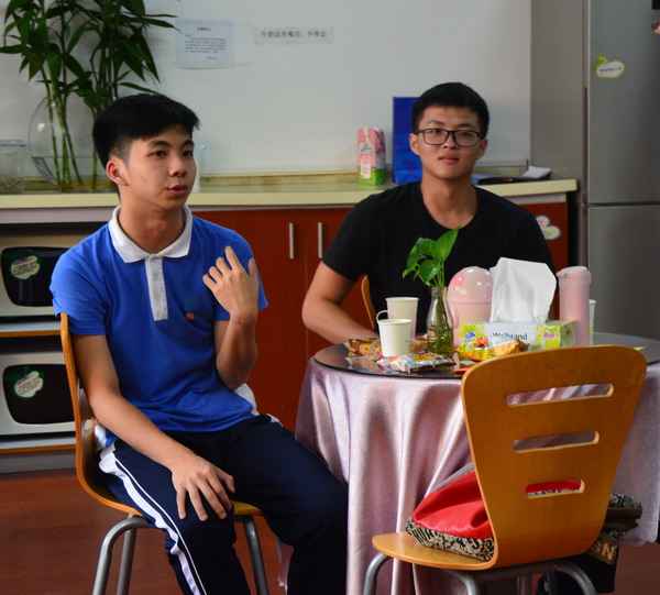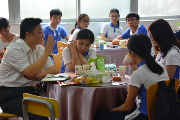 为营造轻松、和谐的座谈氛围,鲁江校长特地将活动地点安排在教师休息室,并准备了点心和饮料。座谈讨论围绕教育教学、学校管理、日常生活等多个方面的开展,没有回答次数的限制,没有回答内容的约束,没有发言顺序的安排。高三年级的与会代表一一道出了对宿舍、饭堂、教学楼等场所管理的意见、建议和解决方案 ,例如在教室内放置实验用具,在班级走廊放置《看天下》《新周刊》等学生喜爱的杂志等等。当谈到对老师的评价时,同学们你一言、我一句,迫不及待地称赞起自己的班主任和任课教师:有的老师们晚上为了给学生答疑,放弃了对家庭的照顾;有的班主任在同学们学习生活动压力很大的时候,给予了父母般的关爱呵护,引领孩子们走出困境.....