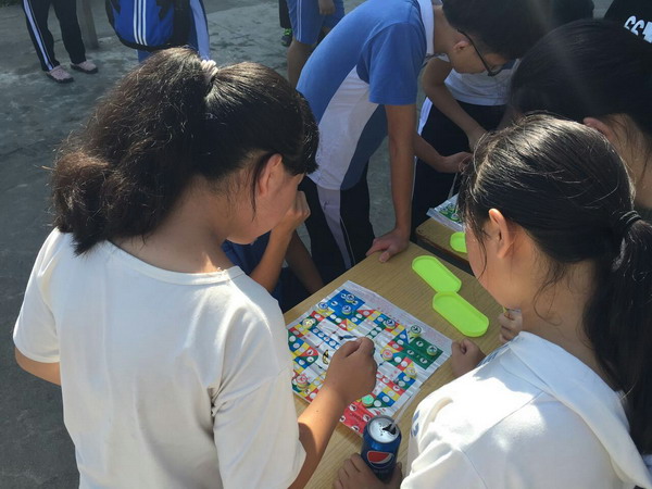 游园会上,我们设立了13个班级游园摊位,邀请黄坳中学学生参与摊位游玩。摊位上的活动形式丰富,有中国象棋、二十四点、夹气球跑、猜谜语、乒乓球弹跳、数独等,通过这些趣味性、娱乐性、智力性的活动增进两校学生感情,同时为黄坳中学学生提供奖品兑奖券。我校团委在活动现场设立奖品兑换处,给黄坳中学学生兑换各种图书和和文具。通过这种游园活动,消除受助学生的弱势情绪和心理,很好地架设起了两校学生间的沟通桥梁。