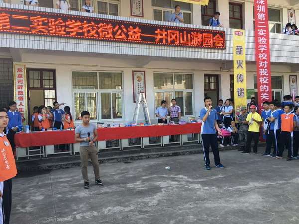 连续四年在井冈山上开展游园活动,井冈山游园会已经成为我校社团文化的一张精彩名片,也曾获得“深圳市中小学公益活动双十佳微公益项目”称号,献爱井冈山公益活动已经成为深圳特区和革命老区间的红色联络纽带,传输着满满的正能量!