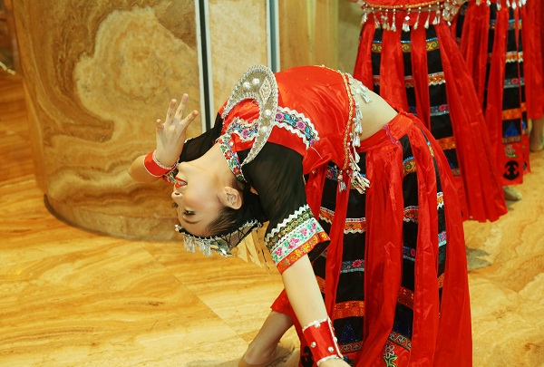在刘斯丹、徐袅老师指导下,我校舞蹈团倾情演绎《一抹红》,同学们舞姿曼妙,动作规范,表情灵动,眼神热情,将苗族送嫁女子的淳朴奔放与山野情趣展现得淋漓尽致,每个动作、每个表情都体现出了深厚的专业素养,对民族风格把握非常到位,强烈地感染了评委和观众,肖苏华老师给出了全场最高分,潘志涛教授给予了高度评价,《一抹红》最终摘得本次比赛唯一一个特等奖,不用参加亚洲赛区选拔赛,代表中国、代表亚洲直接晋级“美国洛杉矶2016至2017年度海桃全球总决赛”!