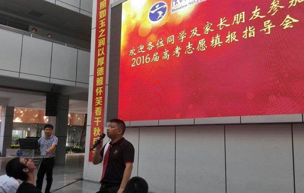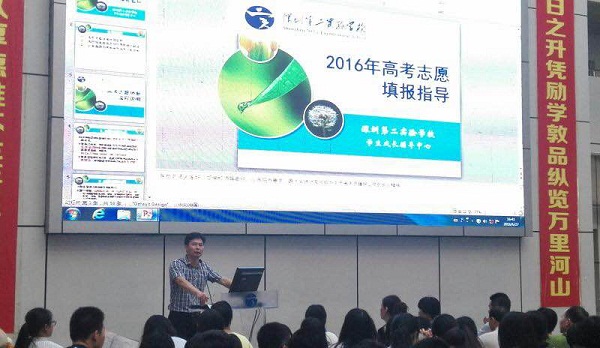 6月27日下午,我校在教学楼一楼大厅召开2016届高考志愿填报指导大会,高三年级学生及家长参会。