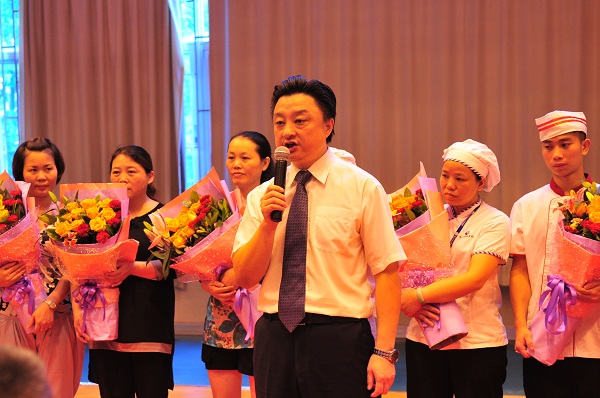 在主持人幽默风趣的开篇语之后,大屏幕展现了由付旭光老师精心制作的短片《我们毕业了》,画风幽默诙谐而又真挚感人,全场爆笑不止而又萦绕着依依不舍的离别之情。接着教学处吴凡主任郑重宣布优秀毕业生表彰决定及名单,学校中层以上领导以及年级老师代表分别为五组毕业生颁奖。最后优秀毕业生深情地为全体师生献上了精心编排的歌舞《送别》。