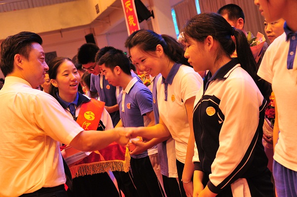 鲁江校长踏着掌声上台致辞。鲁校长站在时代发展、未来人才需求的高度对全体初三学生寄予了美好的期望与祝福,以“奋斗的青春最美丽”为临别赠言,鼓励初三学子勇于担当,敢于创新,做出色的二实人,全场掌声经久不息。之后鲁校长和冯大学副校长代表学校亲自为毕业生代表颁发毕业证、纪念章。最后全体初三学生与恩师们挥手告别,彼此祝福,2016届毕业典礼在音乐声、祝福声中唯美落幕。