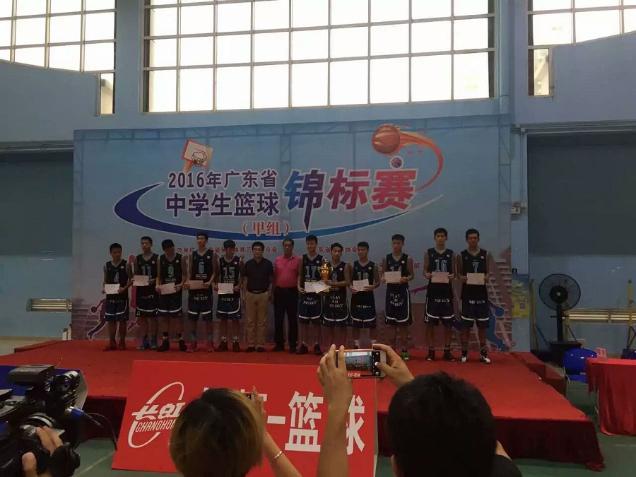 2016年广东省中学生篮球锦标赛由广东省学生体育艺术联合会、广东省篮球协会主办,在广州市第一中学举行。甲组女子组比赛于6月15-20日举行,我校女篮从16所中学代表队中脱颖而出获得冠军。6月22-28日举行的甲组男子组比赛更为激烈,全省实力最强的27所中学的男篮健儿展开了53场比拼,我校男篮在主教练田贵昆老师指导下,小组预赛、淘汰赛击败众多强队,高歌猛进杀入决赛。在与东莞市第四高级中学的决赛中,我校男篮从第三节开始逐渐拉开比分差距,最终以83比60轻松获胜。由于我校包揽了本届比赛的男女子组双料冠军,被关注本届赛事的各路媒体誉为广东篮球“最强校园”。
