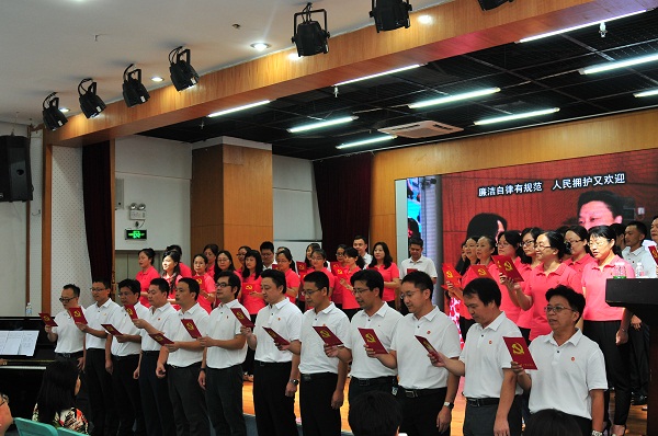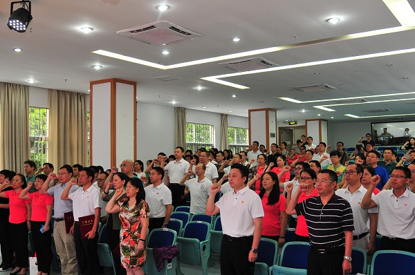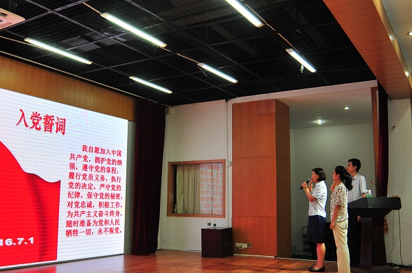 大会还举行了新党员入党仪式,在党委委员缪育群主任领誓下,全体党员起立,与新党员李静同志一起宣誓,重温入党誓词。