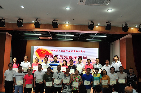 在获得表彰的集体和个人中,我校党委被深圳市委教育工委评为“先进基层党组织”,是工委系统36个先进基层党组织中4个学校党委之一;党办陆林主任被深圳市委评为“深圳市优秀党务工作者”,是100名获此殊荣的党务工作者中仅有的5位老师之一,并在29日全市庆祝中国共产党成立95周年大会上作为获奖代表接受了市委马兴瑞书记的亲自颁奖;在市委教育工委年度评优中,杨宝凤、陈淑芹、张丙尧、黄正玉、张欣、王小维荣膺“优秀共产党员”,尹望玲、沙景成荣膺“优秀党务工作者”,石建国、王斌、黄新勇、曾志辉被评为“立德树人先锋岗”“课程改革先锋岗”“廉洁自律先锋岗”“志愿服务先锋岗”,并在30日下午的市委教育工委庆祝大会上受到表彰,王小维老师还作为唯一的优秀党员代表在大会上发言,感动了全场听众;李娜、陶仁滨、陈晓敏、张建华、赵七群、桂红、崔丽霞、吴凡、宋玉芳、郭云奎、王锋、景慧丽、胡继荣、杨振宏、华柳、段桂霞、熊安义、韩旭阳、刘秀芹、李红权、何格梅、宋利霞、郑景华、廖金龙、梁文平、李苑鹏、李雪亮、李木林等28位党员被评为校级“优秀共产党员”,陈晓敏、赵七群、崔丽霞、胡继荣、熊安义、黄正玉、张欣等7位优秀党员代表的先进事迹被制成微视频在本次大会上播放。校党委对获得校级以上优秀荣誉的党员,颁发“校园党员先锋示范岗”岗牌,向全体党员发给“我是共产党员”台卡,通过挂牌立卡,亮党员身份,做示范榜样。