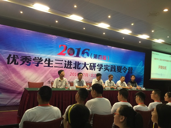 下午,来自全国各地的师生欢聚北京大学中关新园,参加全国2016年优秀学生三进北大研学实践夏令营的开营式。江长仁教授讲解的北大传统历史精神——爱国、进步、民主、科学,让在座的五百名学生受益匪浅。各方嘉宾在就开营式上精彩演讲,与会领导、专家与全体营员合影留念。