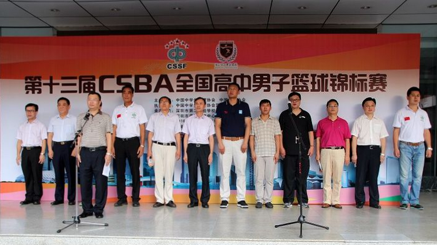 7月25日,第13届CSBA全国高中男子篮球锦标赛在我校隆重开幕。中国中学生体育协会竞赛部副主任胡京敏、深圳市教育局副局长范坤、首都师大附属实验学校校长王松、中国中学生体育协会篮球分会秘书长赵明志、中国中学生体育协会篮球分会竞赛委员会主任董邕宁、广东省学生体育艺术联合会主席郭鼎文、广东省学生体育艺术联合会秘书长林子平、深圳市社会建设与区划促进会会长原深圳市委教教育工委副书记陈贤德、深圳市教育局德体卫处长钟子荣、深圳市第二实验学校校长鲁江、深圳市第二职业技术学校校长郑联采以及本次比赛裁判长李成新等出席了开幕式。