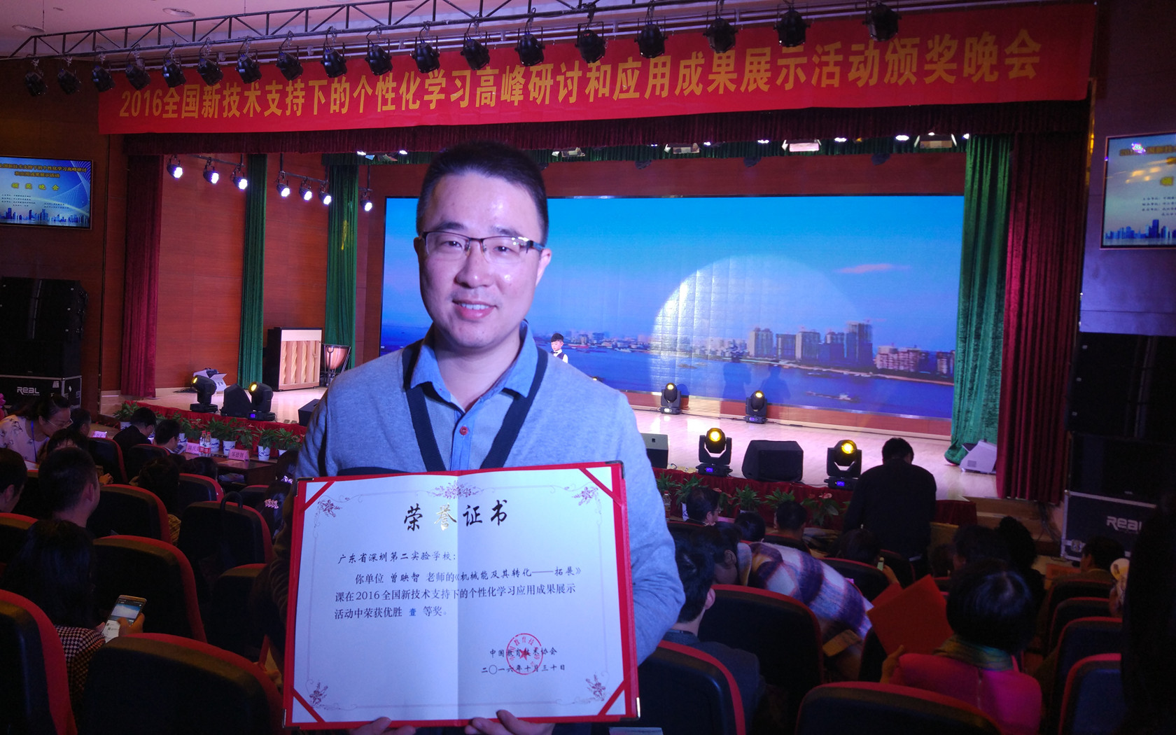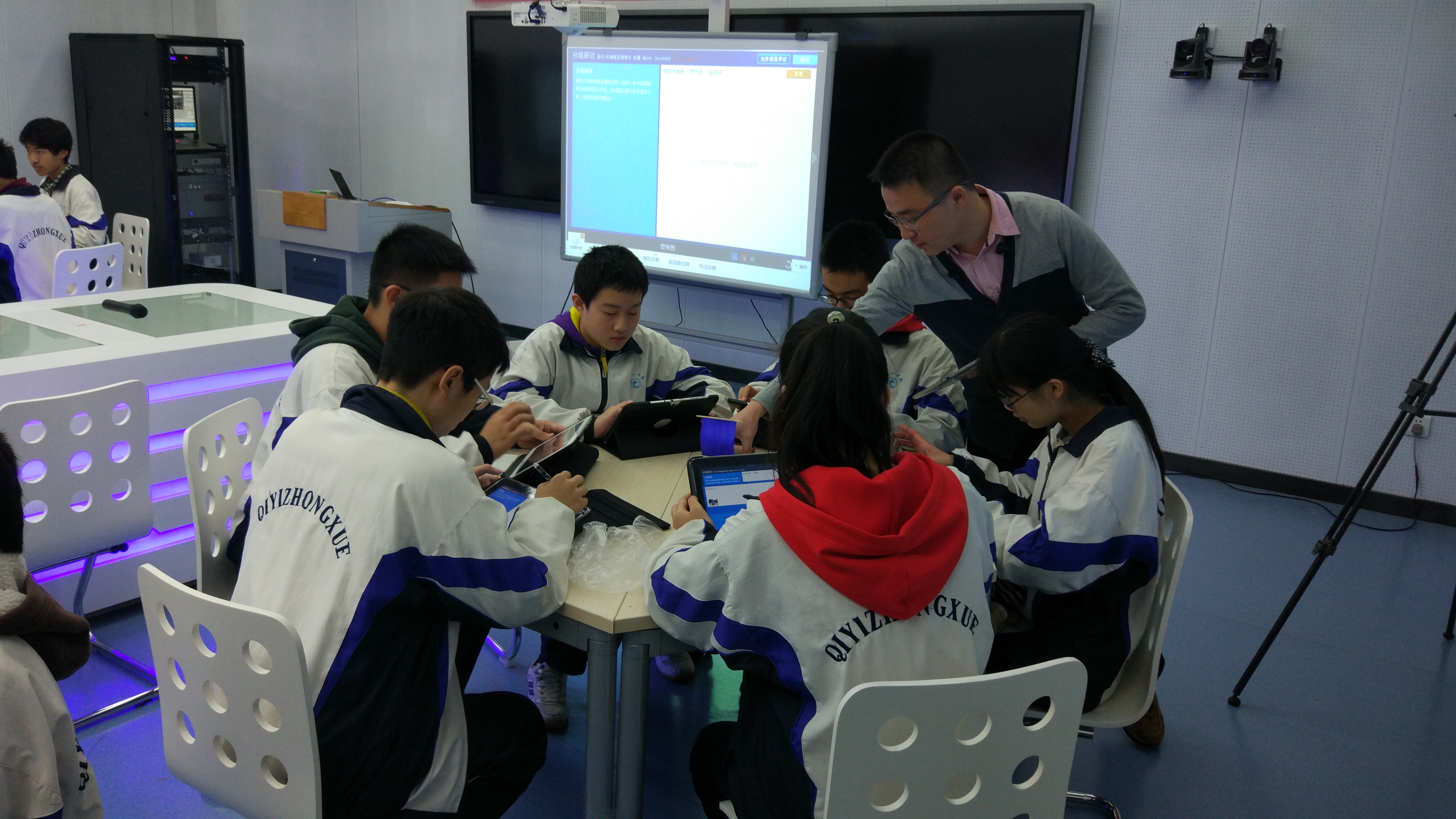 作为深圳市初中组唯一优秀课例代表,我校曾映智老师申报的课例《机械能及其转化——拓展》在广东省赛区中脱颖而出,被推荐参加今年10月28日—31日中国教育技术协会在武汉举行的2016全国新技术支持下的个性化学习高峰研讨和应用展示活动,最终荣获全国一等奖。在全国展示活动中,我校信息中心自带服务器、Pad、网络等设备,借武汉市七一中学的场地和学生开展教学活动。曾映智老师充分利用互联网、多媒体等技术在自己的物理课上实施了个性化教学。曾老师的教学基本功扎实、语言幽默、富有亲和力,通过短短的一节课,赢得学生的喜爱、评委的赞赏。在教学环节中,学生利用Pad在教学平台上上传小组作品照片、视频与说明文字,小组之间展开深入的讨论,利用网络投票进行小组作品的评选,选出最受欢迎的实验作品,老师通过网络答题与评价迅速了解到每个学生对知识的掌握与运用情况,学生结合自己的实际选择观看老师在教学平台中准备的答疑微视频,满足学生个性化的学习需求,然后让学生去挑战完成课堂练习和进阶练习。这节课师生之间、学生之间的互动性强,老师作为引领,学生为中心,充分体现了新技术在个性化学习中的作用和优势,学生的兴趣得到激发,学生挑战困难的信心得到提高。上课结束后,我校曾映智老师成了现场的明星教师,参加听课学习的老师纷纷找曾老师要联系方式,希望能与他进一步交流学习。