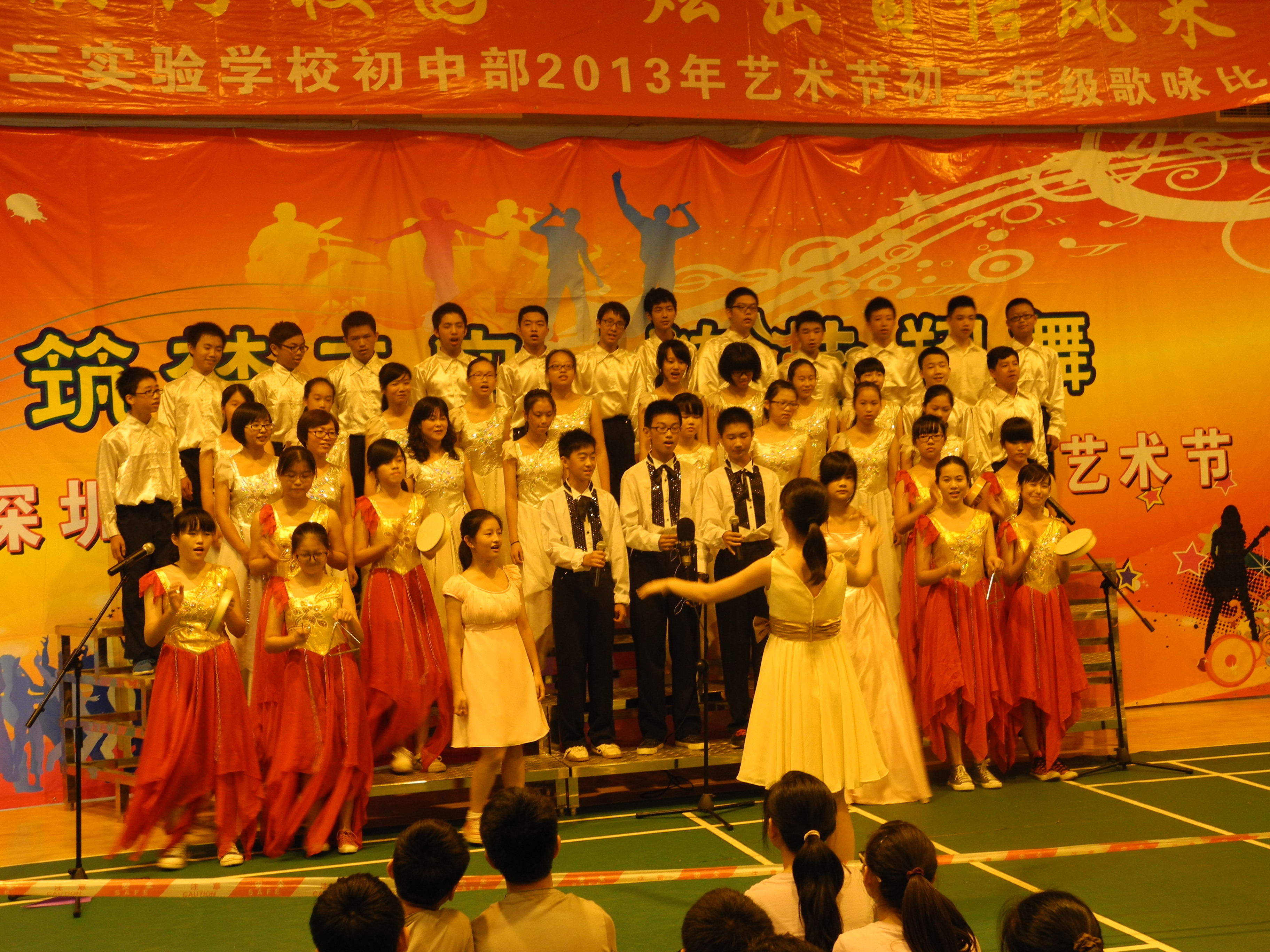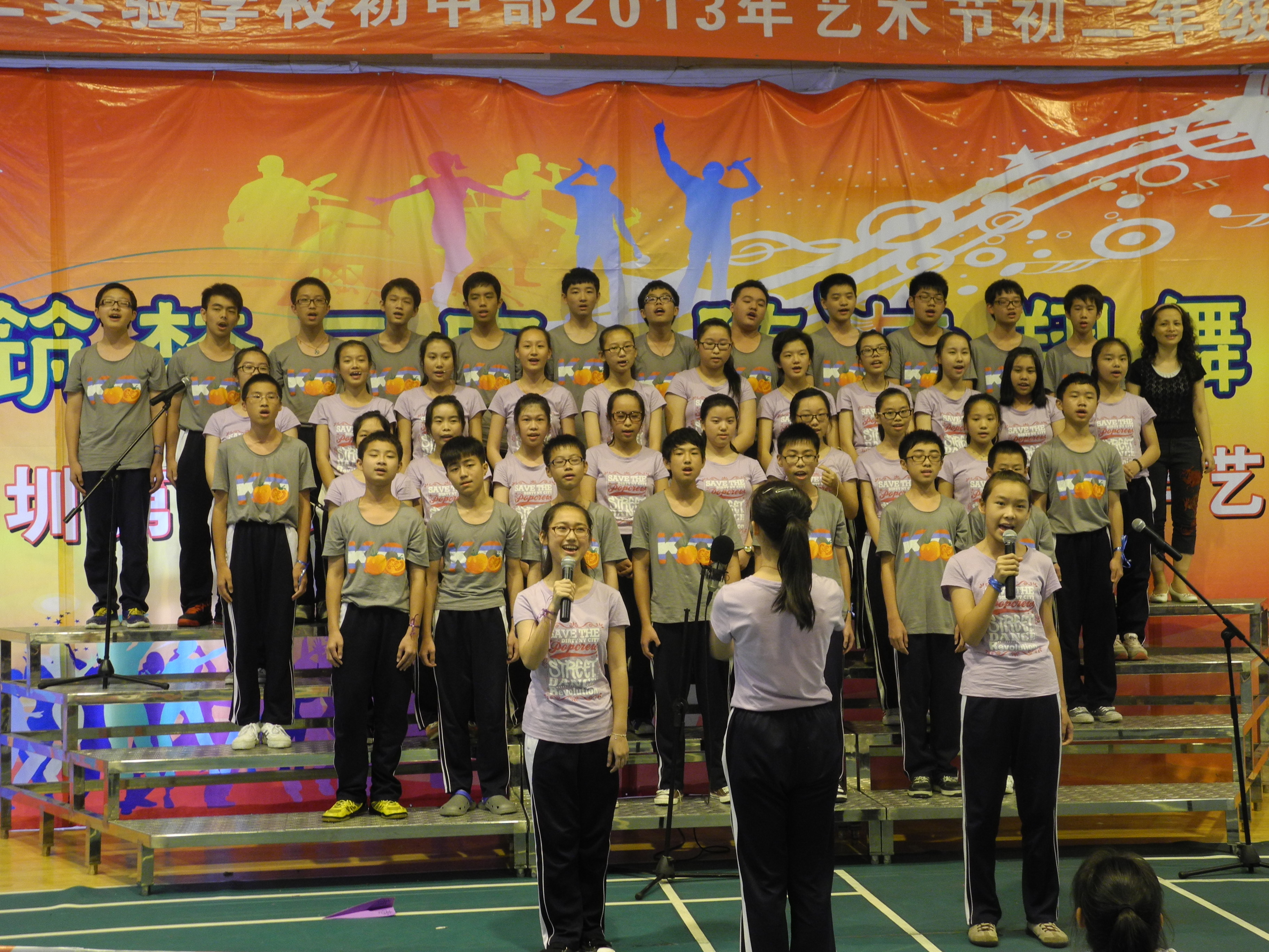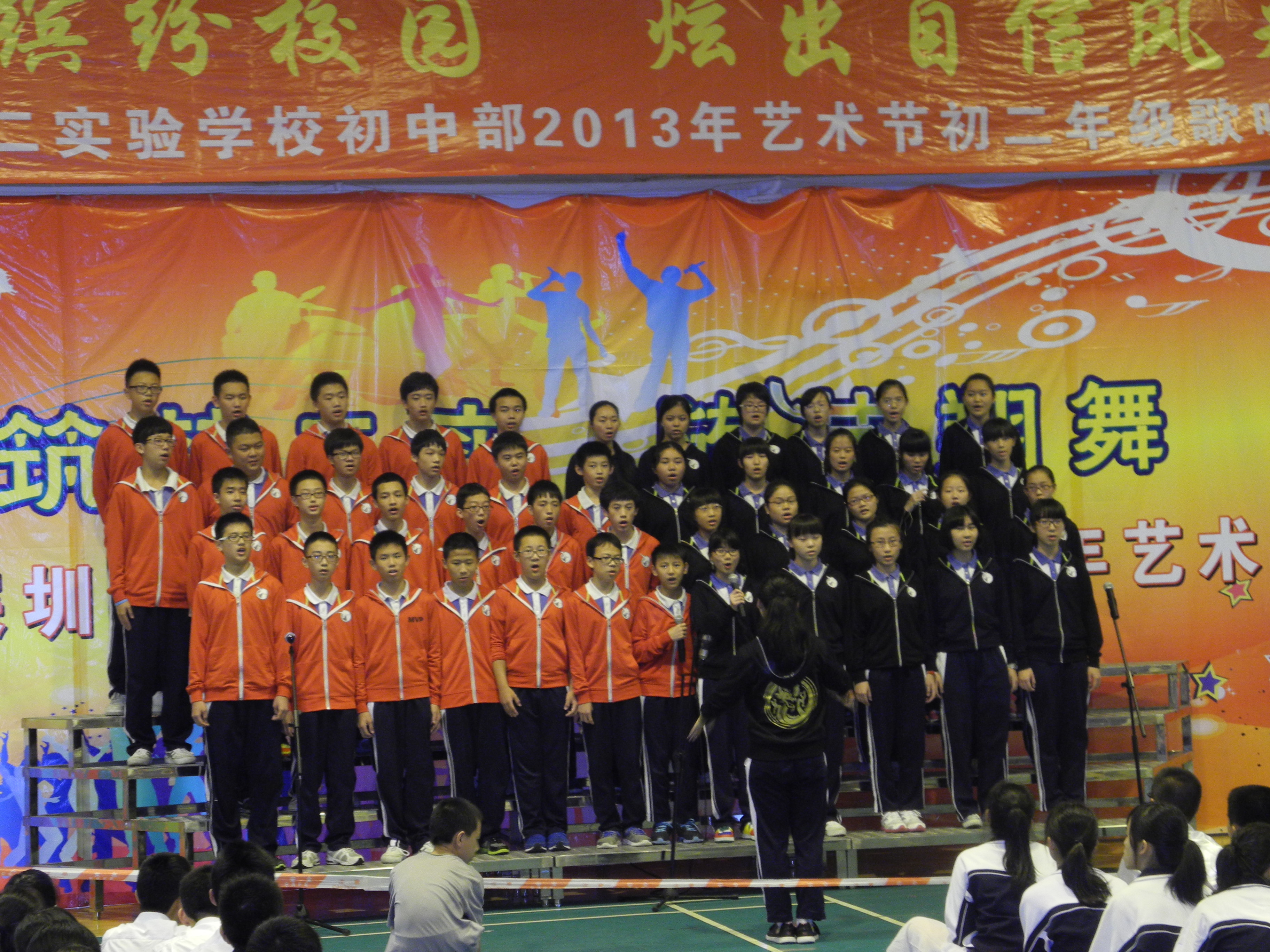 2013年5月16日下午,“深圳第二实验学校2013年艺术节之初二年级合唱比赛”在校初中部文体馆三楼拉开帷幕。学生处吴凡主任作为嘉宾出席本次比赛,初二年级主任赵丽英、陈淑芹与初中全体音乐老师及两名学生代表共同担任本次比赛的评委。初二师生积极参与这次活动,会场组织严密、纪律严明、师生同乐,赛场秩序井然,取得了合唱比赛成绩和文明风尚双丰收,是一次空前的合唱盛会。
