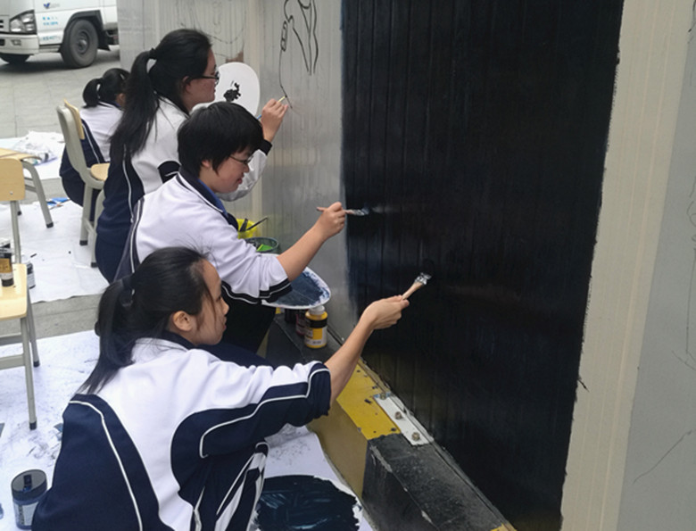 在这一幅幅方寸之间,我们能感受到同学们对生活的热爱;在这一个个五彩斑斓的梦里,我们能感受到同学们对未来的憧憬。精致优雅的校园变得更加丰富生动,冰冷的墙壁充满温度和趣味。艺术墙上的作品潜移默化地影响着同学们对文明的认知,也提升了全校师生的艺术素养,彰显着学校艺术教育的品质和高度。