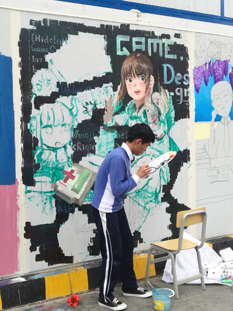 三月的二实校园,处处萌动着蓬勃生机与创造激情。近日,我校开展“职业形象艺术设计大赛”,同学们迸发无限创意,化腐朽为神奇,在学校文体馆工地安全围墙上,挥洒才情,展示艺术才华,用画笔创作了未来社会的职业想象,一个色彩绚丽的艺术墙惊艳问世,给素净的校园带来无限的活力。