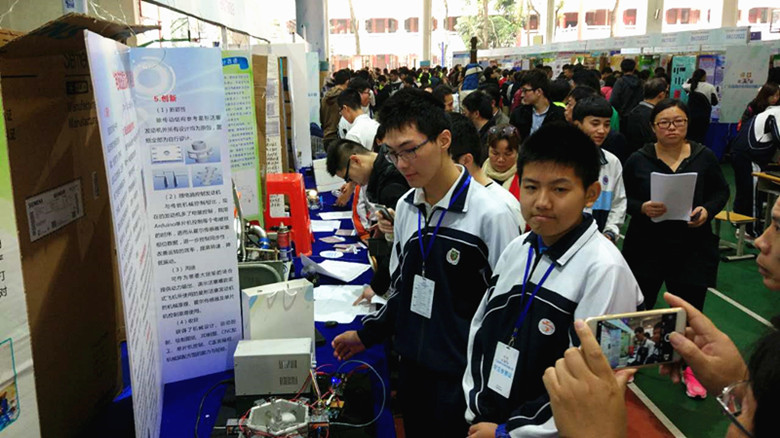 在广东省青少年科技创新大赛中,高三10班夏宇彬同学获得金奖,初一10班宋毓哲同学获铜奖,还获得火柴科技创新专项奖。