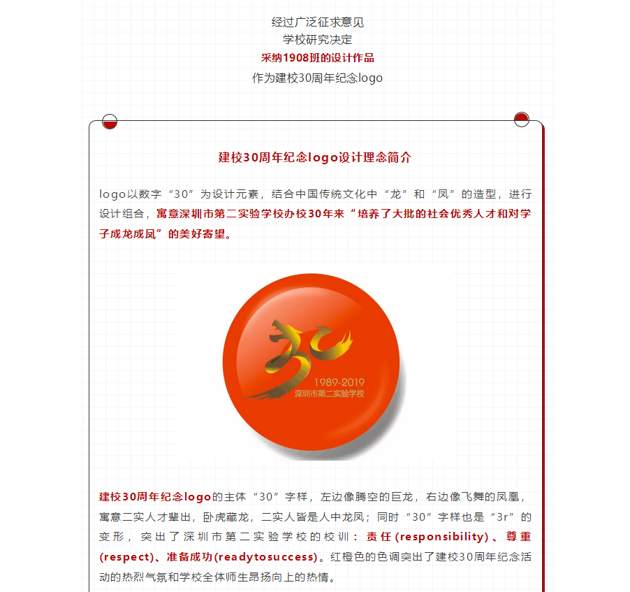 龙飞凤舞——二实建校30周年纪念logo出自学生之手!