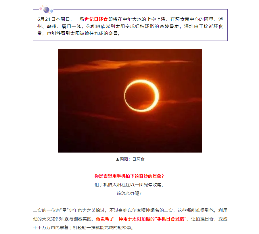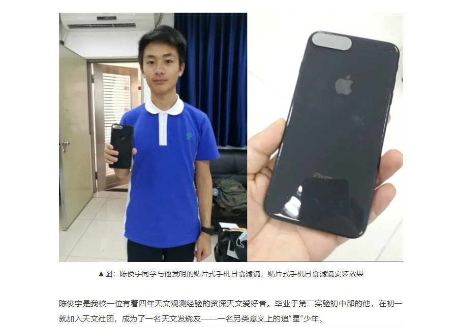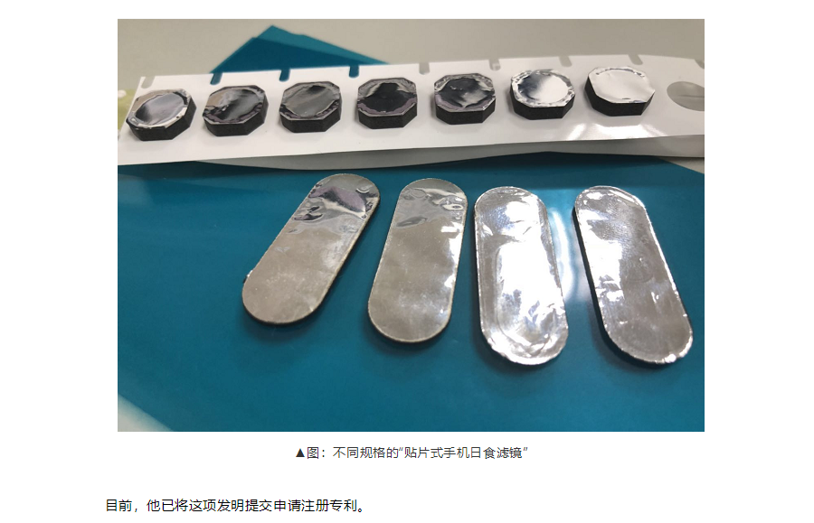 日环食来了,二实学生发明“贴片式手机日食滤镜”