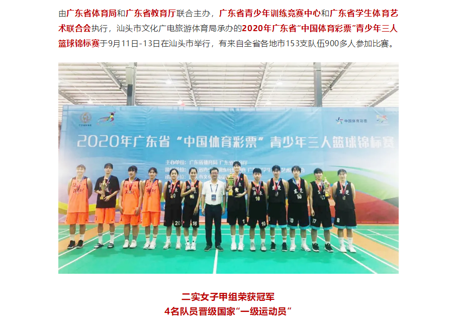 二实女篮获全省冠军,五名学生晋级国家“一级运动员”