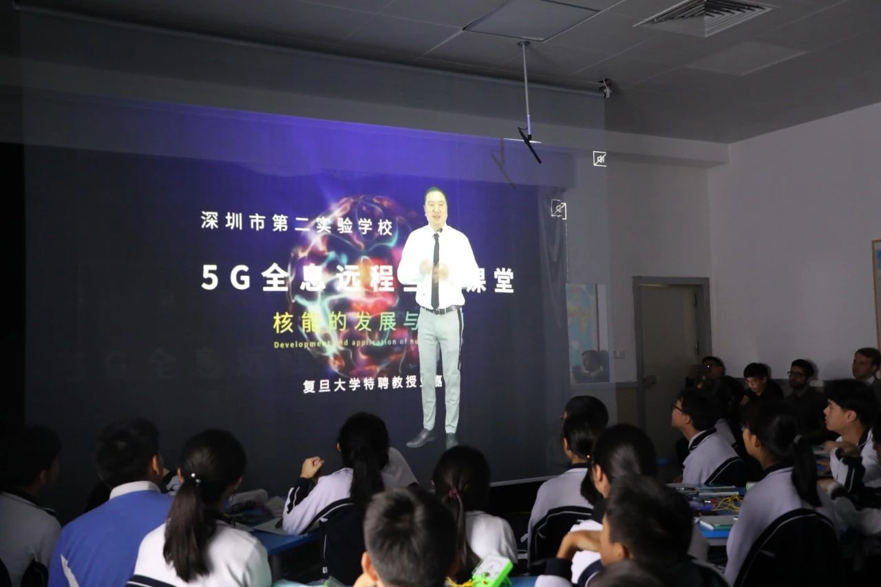 12月30日上午,深圳市第二实验学校开展了3节基于5G技术的智慧教学课堂,深圳市教育信息技术中心副主任梁为以及全市近百名老师到校观摩。