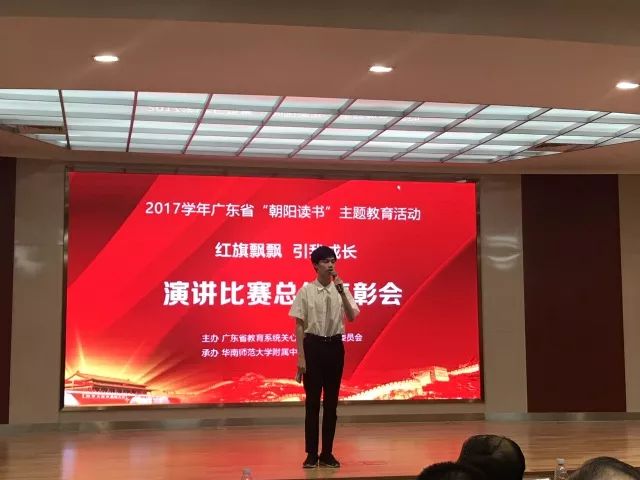 2018年5月26日,我校东湖书院高二16班王志峰同学代表深圳市直属学校参加在广州举办的“红旗飘飘,引我成长”演讲比赛,荣获特等奖第一名的好成绩。