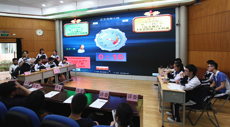4月5日下午,一场精彩激烈的辩论赛在我校高中部上演。这是我校读书季一场“重头戏”,犹如校园“华山论剑”。各位辩手以“善意的谎言是否有碍诚信”为辩题激烈交锋,最后,高二(14)班凭借其杰出辩才获得本次辩论赛总冠军。