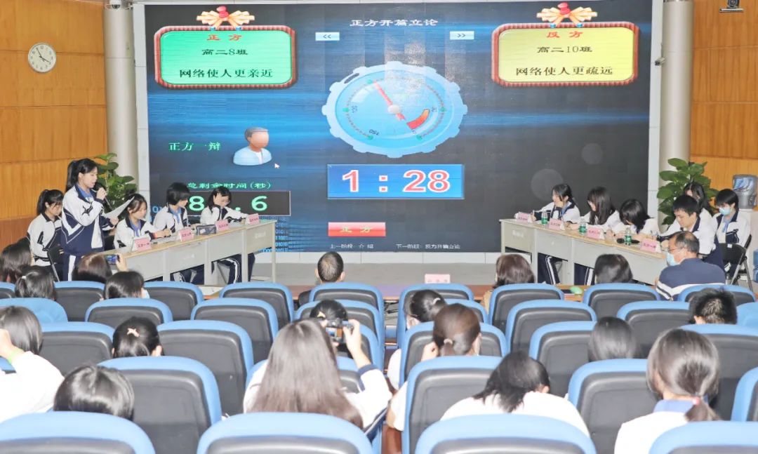 2022年5月16日下午,2022年读书季辩论赛在阶梯教室迎来了最精彩的终极之战。经过两轮激烈的初赛,高二8班、高二10班代表队杀入决赛,进行巅峰对决。