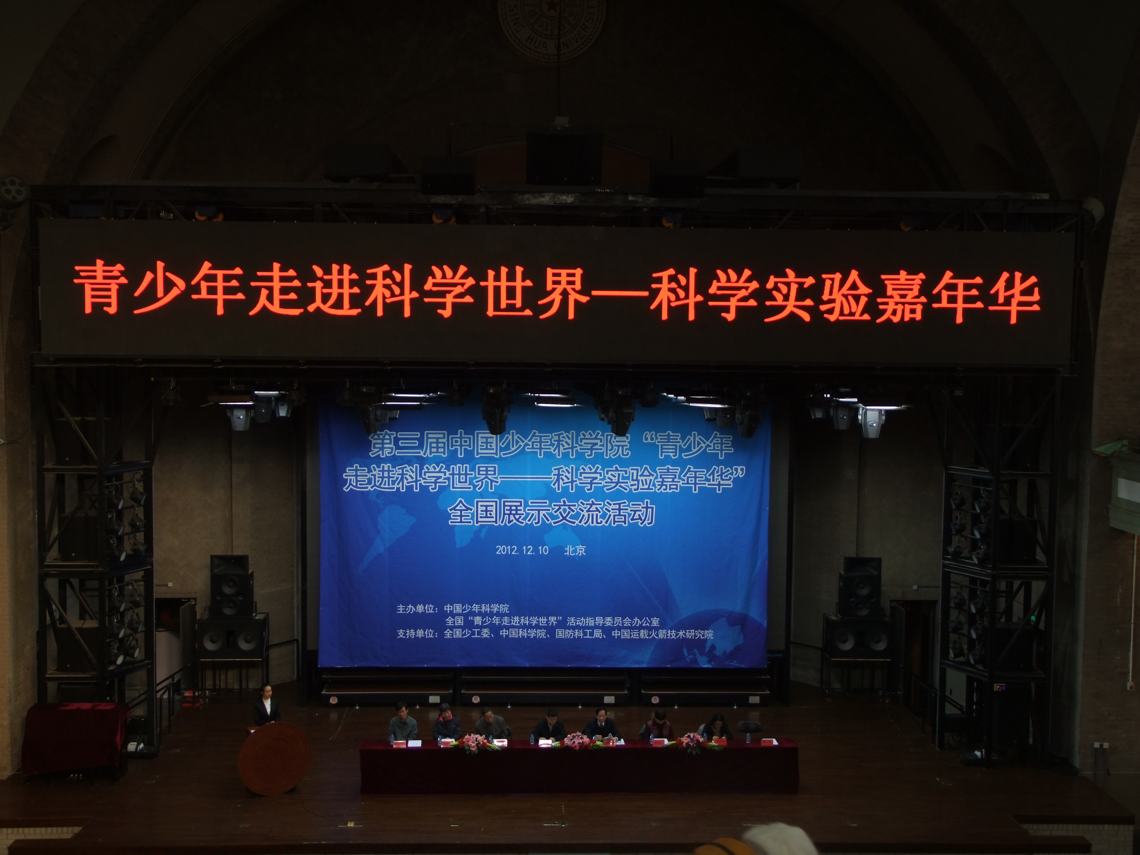 2012年12月7日-10日,我校初中部科学“小实验家”社团13名学生,在李雪亮、陈珊、王忠正三位老师的带领下,赴北京参加第三届中国少年科学院“青少年走进科学世界——科学实验嘉年华”活动,进行“争当小实验家”的全国总决赛。