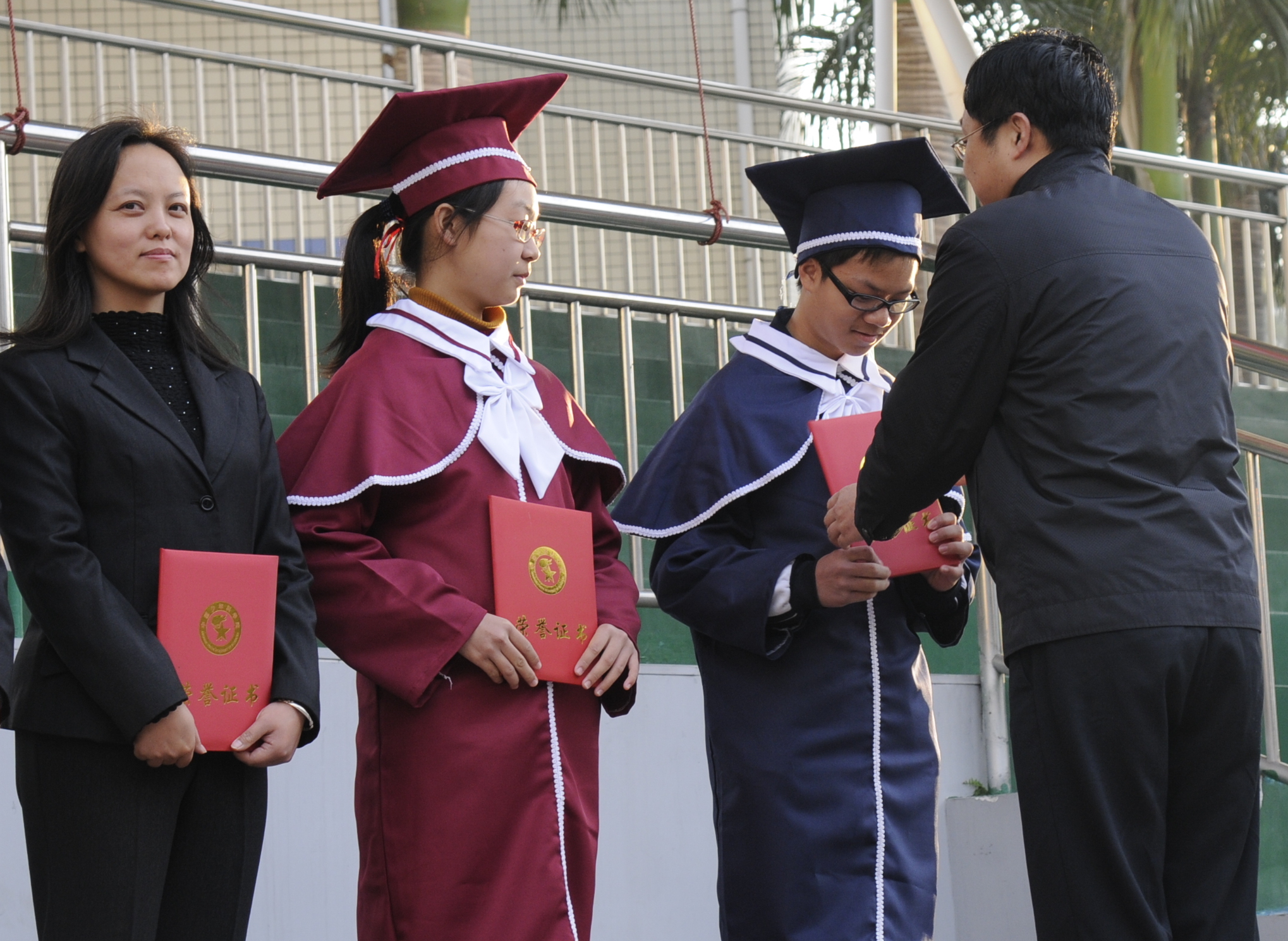 赵立校长为获奖师生颁奖 赵立校长与获奖师生合影