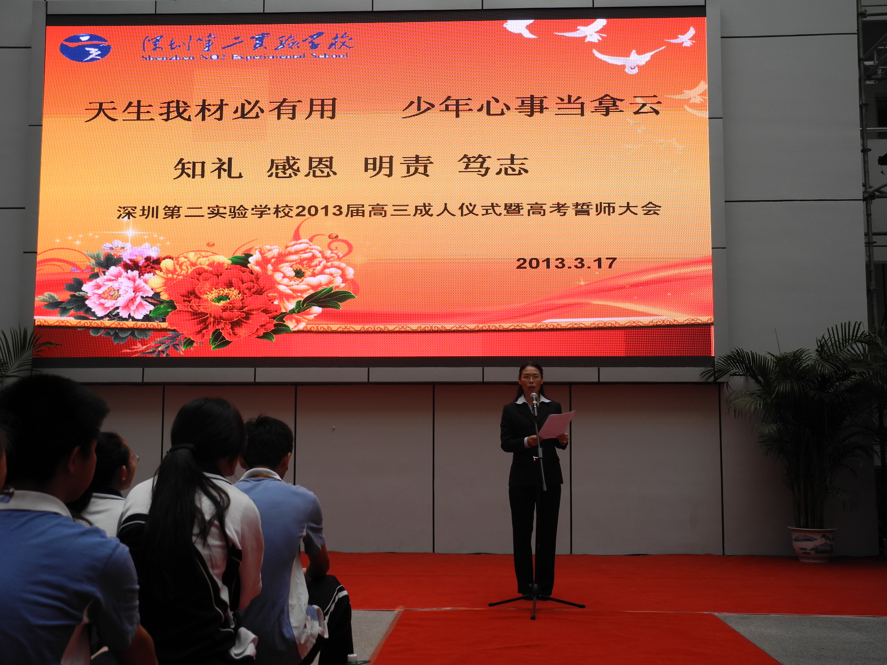 据悉,成人礼是第二实验学校开展多种多样的主题活动、促进学生健康成长、提升学生全面素养的一个组成部分。本次活动对引导学生学会感恩、承担社会责任,助力学生卓越成长起到了很好的教育效果,也成为第二实验学校实现“打造特色实验学校,领跑深圳教育发展”这一工作目标的一个生动注脚。