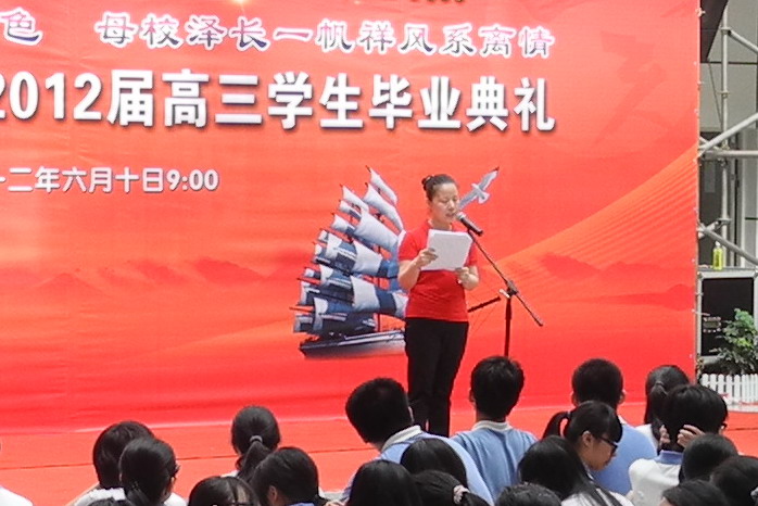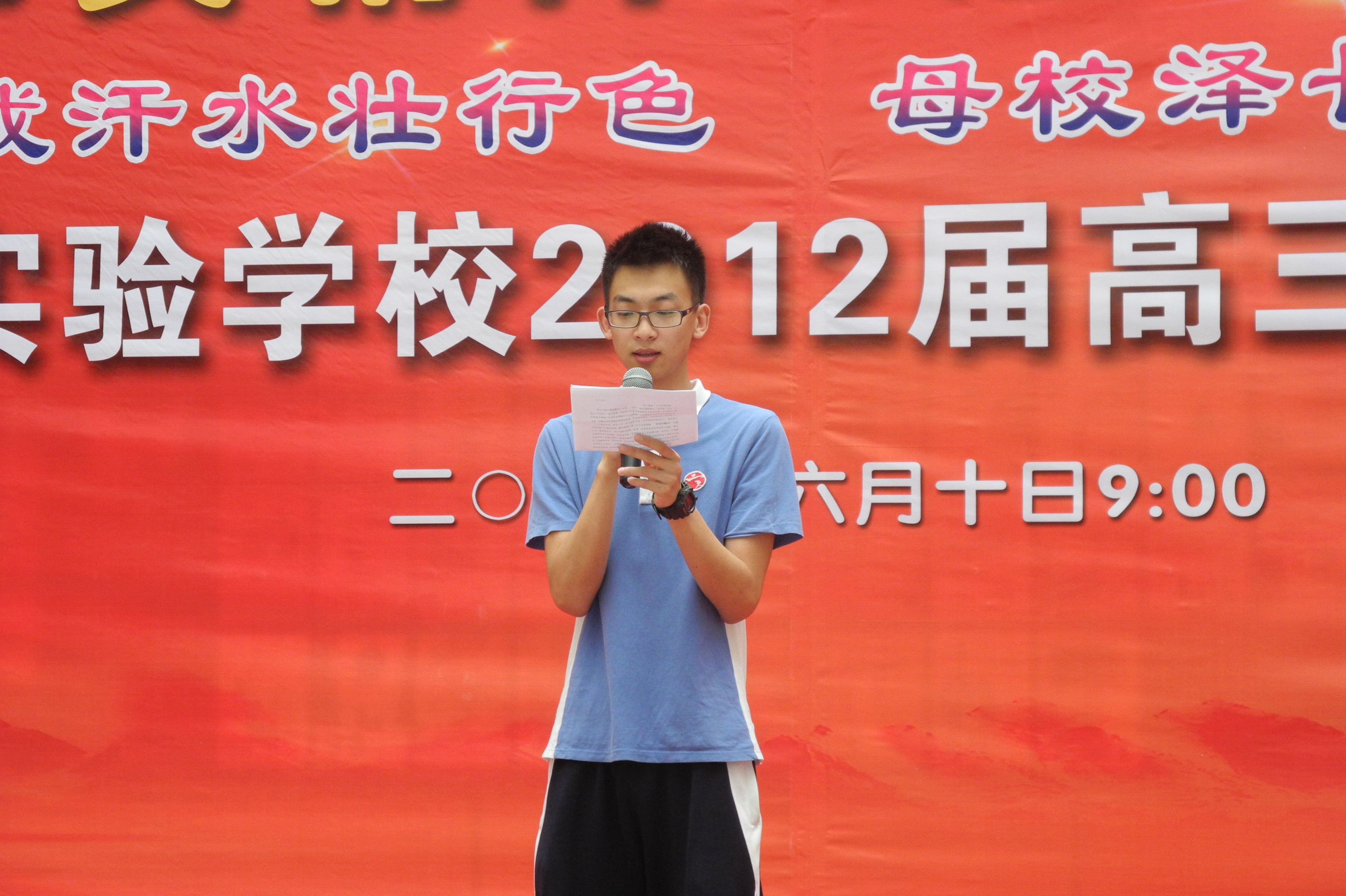 大会由郑联采副校长宣读2012届优秀毕业生名单,紧接着四位校长为同学们颁发了毕业证书,这是对高三学子们努力的肯定,也是对学生高中三年足迹的见证。毕业生杜怀一同学代表全体高三毕业生发言,表达了对老师们的敬意与感谢。