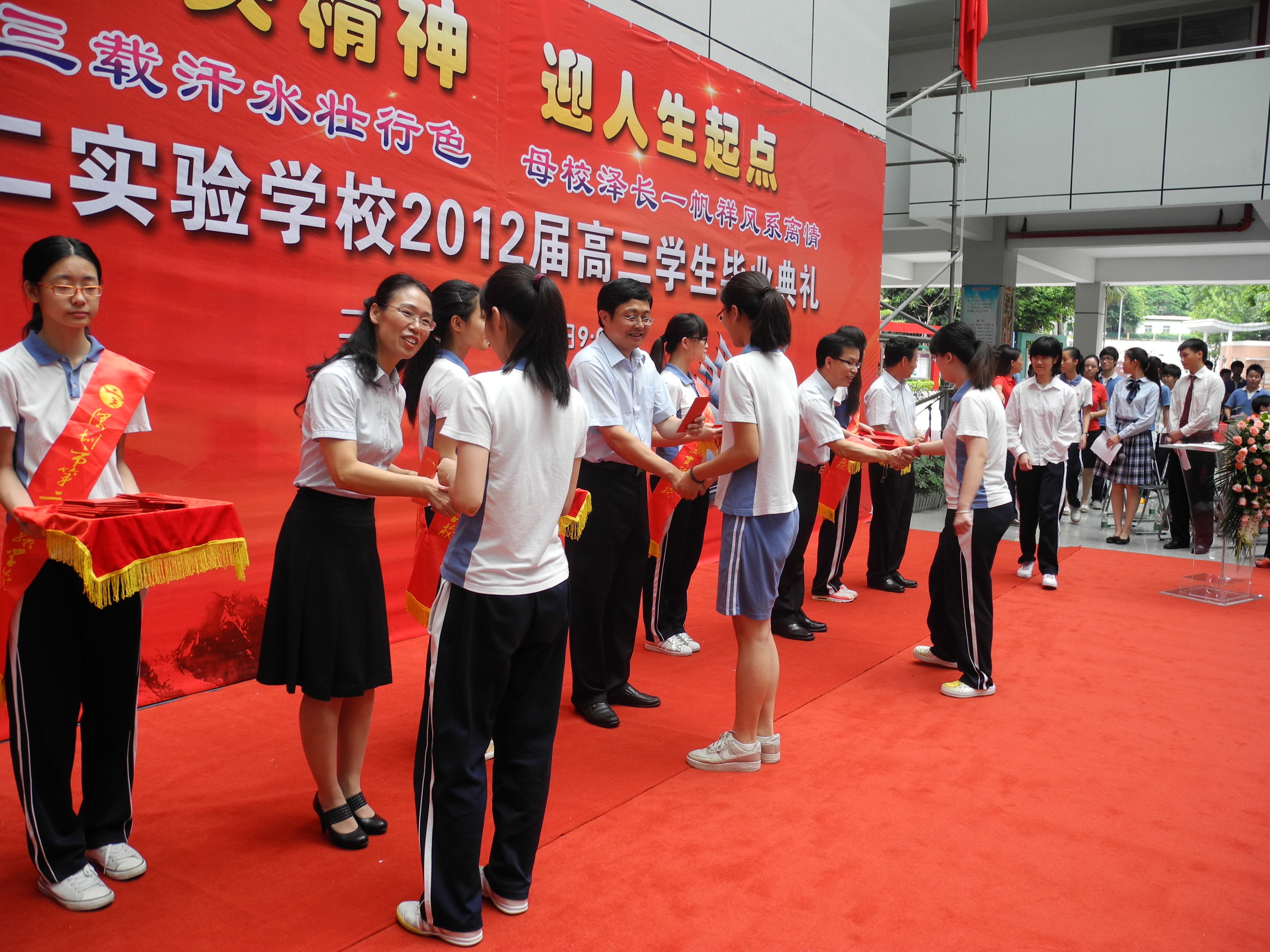 毕业典礼在刚刚荣获校园十大歌手称号的高三一班张敏慎等同学的临别献歌的深情曲调下落下帷幕,学子们的三个鞠躬,师长们的声声叮咛与祝福,成长的喜悦与淡淡的离情盈满二实的校园。