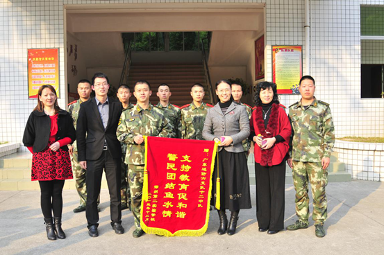 为表达对广东边防六支队十二中队的感谢,12月24日下午,在李雅萍副校长的带领下,初三年级赵丽英主任、陈淑芹副主任和综合实践科组老师专程到六支队十二中队驻地赠送了一面锦旗,以表谢意。在中队营地,杨中队长对学校专门送来锦旗表示感谢,表示今后将进一步加强与学校的交流,为地方教育发展提供支持和帮助。