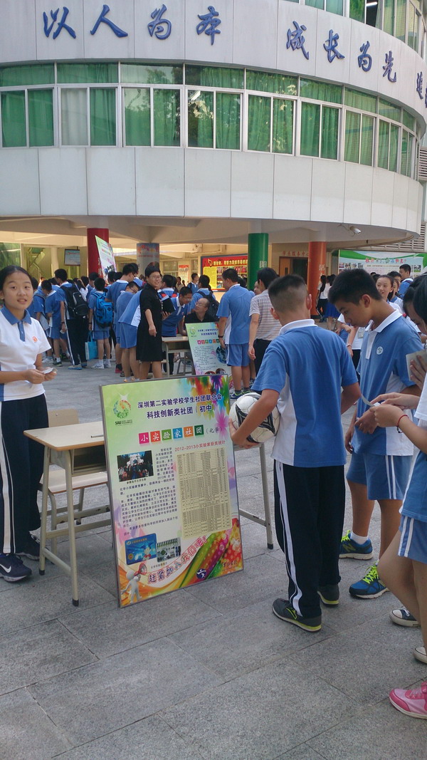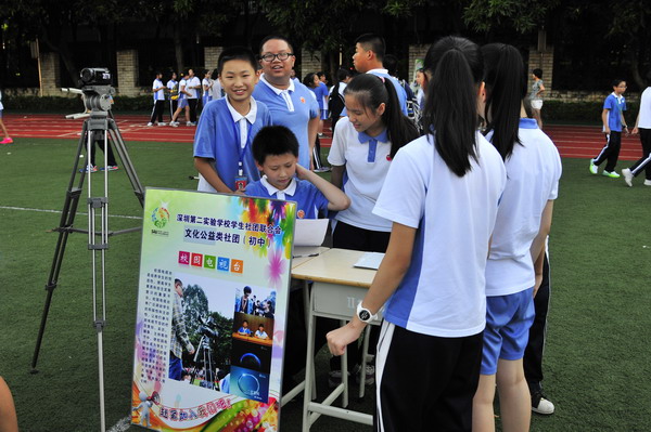 在校初中部团委的组织统筹和科技创新中心、艺体中心的协助下,2014-2015学年初中部社团招新大会于9月11日周四下午隆重举行。招新大会会场分两个,分别为科技创新类社团10个在一楼中厅,艺术体育类社团17个与文化公益类社团11个在田径场,各个社团准备充分,展示多样社团风采,前期团委、年级宣传到位,社团老师们都认真负责,热心为学生解疑答惑,招新报名场面火爆。