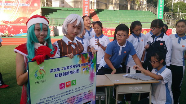 新加入的漫研社招新方式新颖,学生以cosplay的造型吸引全场目光。篮球场上,篮球社团的招新考试,由陆冠超老师进行,吸引了许多初一的篮球爱好者前来考试,每个人脸上都有着汗水,每个人的眼神里都期待着能测试通过,加入社团,在测试当中,陆老师还会纠正他们的错误姿势,给予正确指导。走到中厅前的小操场,科技创新类的社团也在火热的招新,有些社团的还将在社团所用的道具以及作品带来展示。志愿者社团、校园电视台、校园广播站、书法社、跆拳道社等等都得到了很多同学的青睐,会场热闹非凡,不少社团招生人数众多。此次社团招新大会成功举办,给初一新生和初二学生都留下深刻美好的社团回忆。