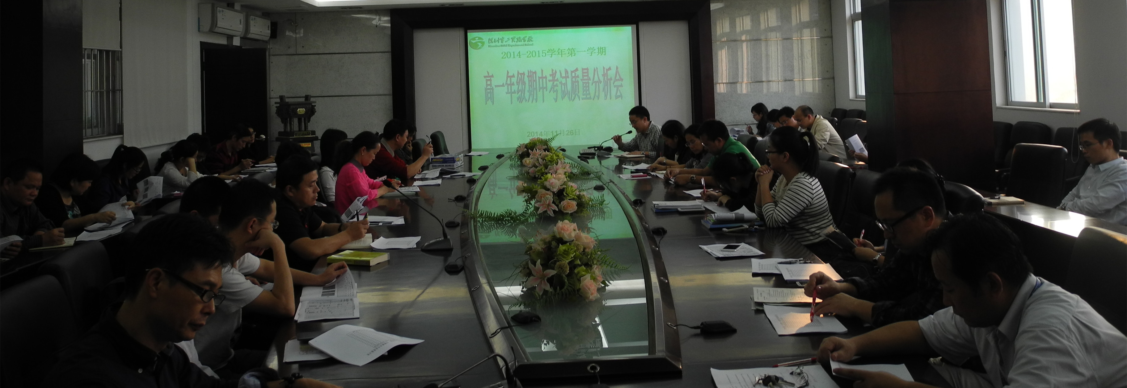 11月26日下午4点30分,高一年级期中考试质量分析会在综合楼10楼会议室隆重召开。校领导赵立校长、李雅萍副校长、梁清泉主任、林伟主任莅临会议现场,高一年级九大学科全体教师参加了本次会议。