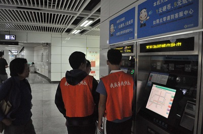 在地铁站,同学们有序地引导乘客乘车,给站台的人之路,帮助老人和孩子,给有需要的人提供帮助,倡导市民文明出行、安全乘车。充满热情和责任心的我校志愿者为地铁的安全运营和市民的顺利出行做出了突出的贡献。