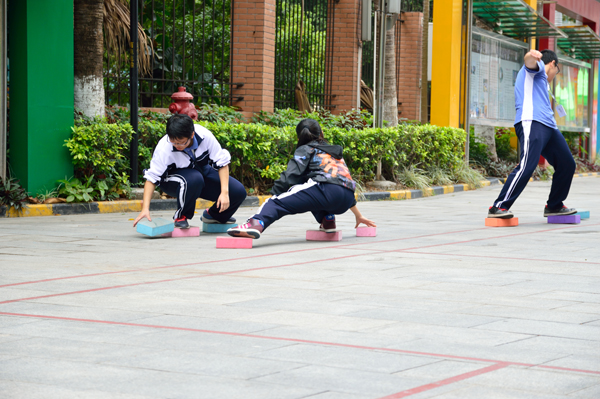 体育嘉年华时长3小时,同学们自主设计了趣味障碍跑和趣味竞技两大部分内容,包括“跳跃的青春”、“趣味一笔画”、“妙解连环锁”、“大家来找茬”、“数字猜猜猜”、“摸石头过河”、“跳跃的排球”、“谁是神射手”等不同类型的项目,既有智力的考验,也有体能的挑战。同学们首先在“大本营”排队领取参赛券,然后出发奔向不同的项目营地,根据参与项目完成的时间领取本子、水杯、洗衣液、牙膏、订书机、毛巾等不同的奖品,所用时间最短的前十名还能额外领取到背包。