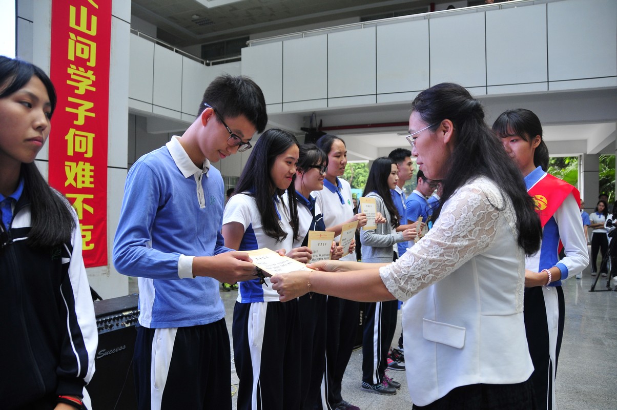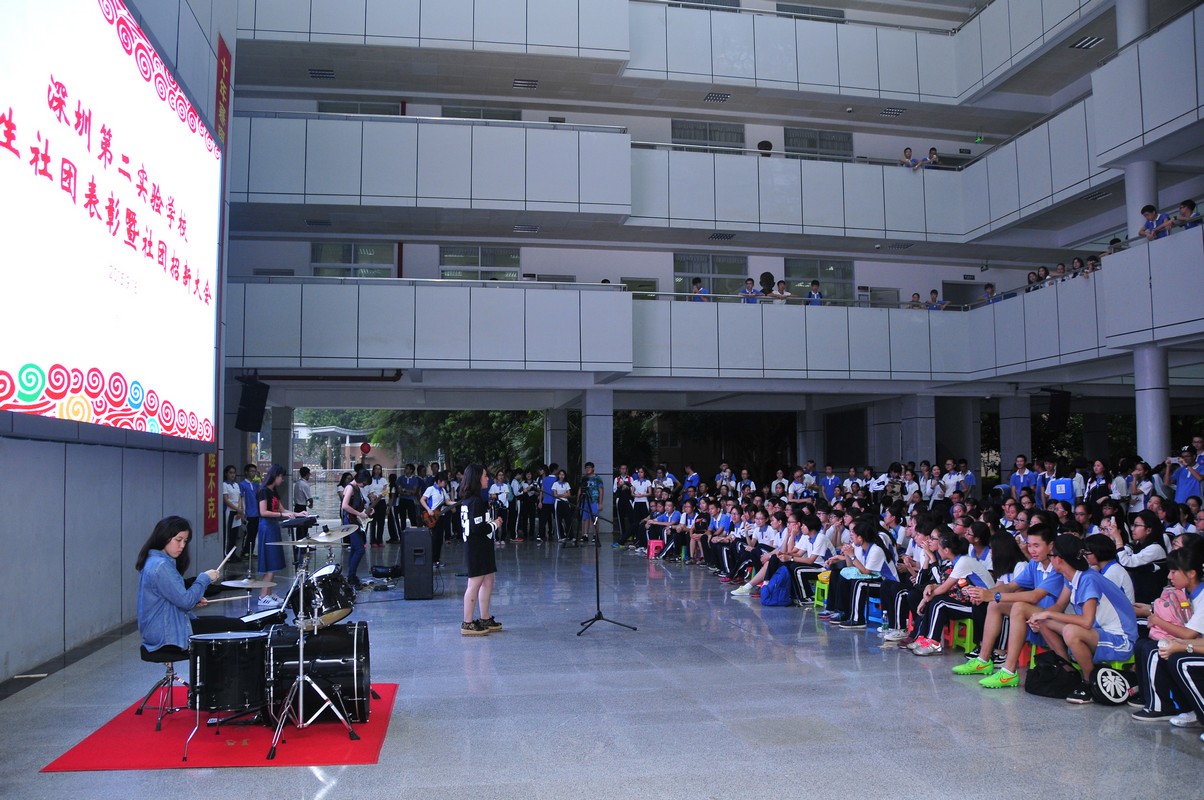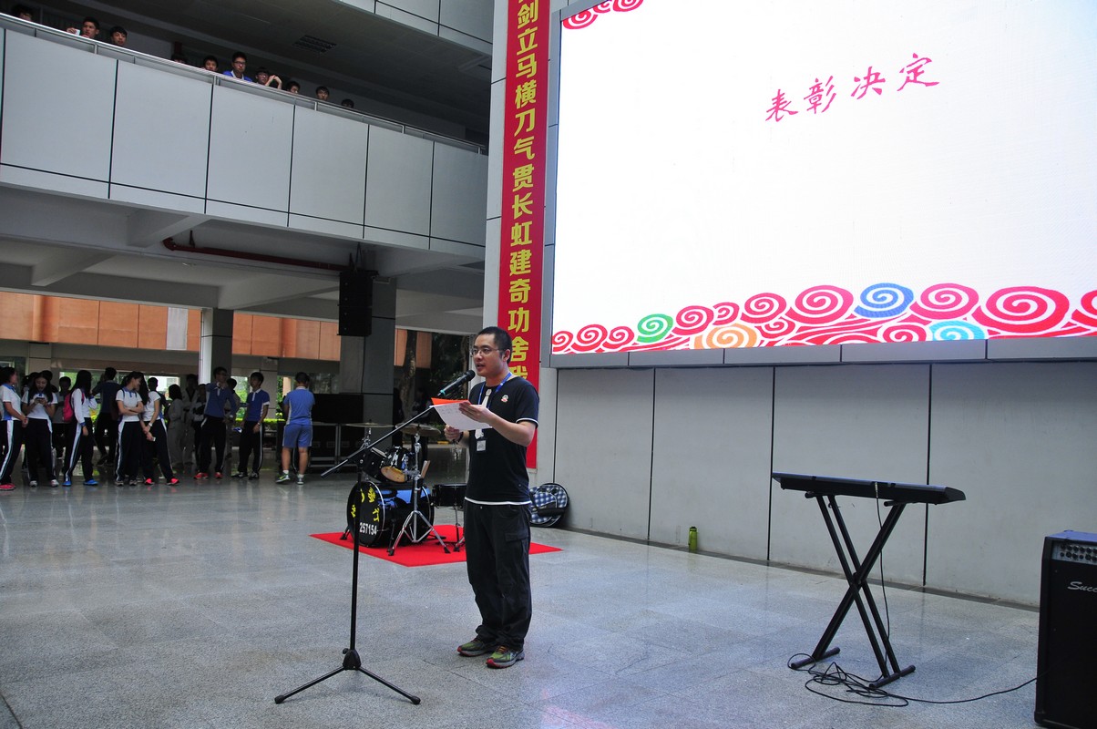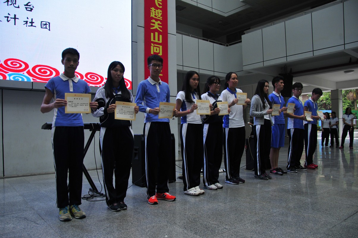 大会在庄严的国歌声中拉开序幕,团委李雪亮书记宣读2014-2015学年的社团表彰决定。我校志愿服务社团等10个学生社团被评为 “十大魅力社团”;朱玫桦等10位同学被评为“十佳社团领袖”;孟星宇等60位同学被评为“优秀社团成员”。李雅萍副校长为获奖社团及代表颁奖。叶飞宇同学代表优秀社团干部上台发言,介绍了他所在的电声乐社团的发展历程以及自己的感受与收获,并号召更多同学积极参与到社团活动中去。