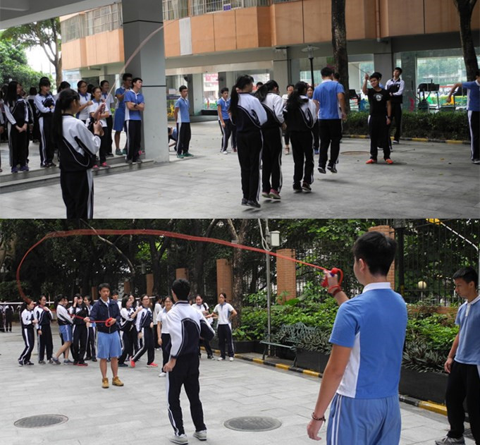 新学期开始已近月余,高二年级的大课间跳绳活动也在不断深入展开。在经历了一段时间的探索之后,在年级的高度重视之下、在班主任的辛勤陪伴之下、在体育科组老师的大力配合之下,现在高二年级的大课间跳绳活动正在逐渐趋于完善。