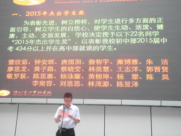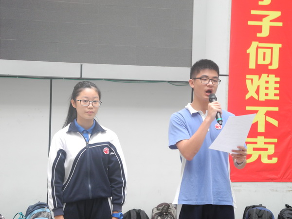 2015年10月19日7:30,2015级高一年级举行了以“迈开高中第一步”为主题的高一年级第8周升旗仪式,仪式由高一(1)班林 静、梁玮桐两同学主持,李平副主任作了主题讲话并表彰了2015年杰出学生以及国庆节后数学测试成绩优秀学生,高一(2)班何思思同学做了题为《迈开高中第一步》的主题发言。