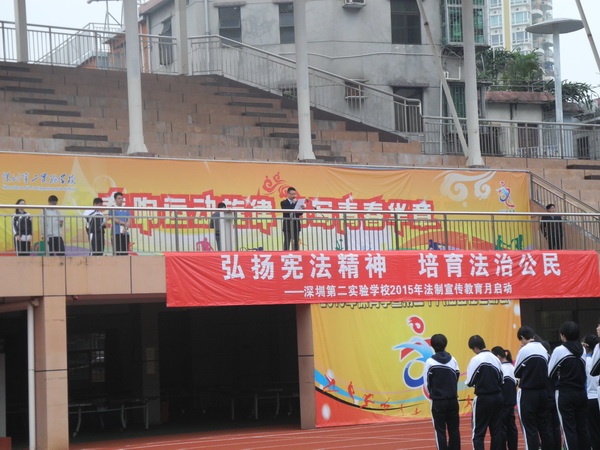 2015年12月14日早晨7:30,2015级高一年级在学校大操场举行了第15周升旗仪式,仪式由高一(1)班林静、梁玮桐两同学主持,高一年级李平副主任作了主题讲话,科技创新中心宋泽红主任就学生参加自主招生做了主题发言。